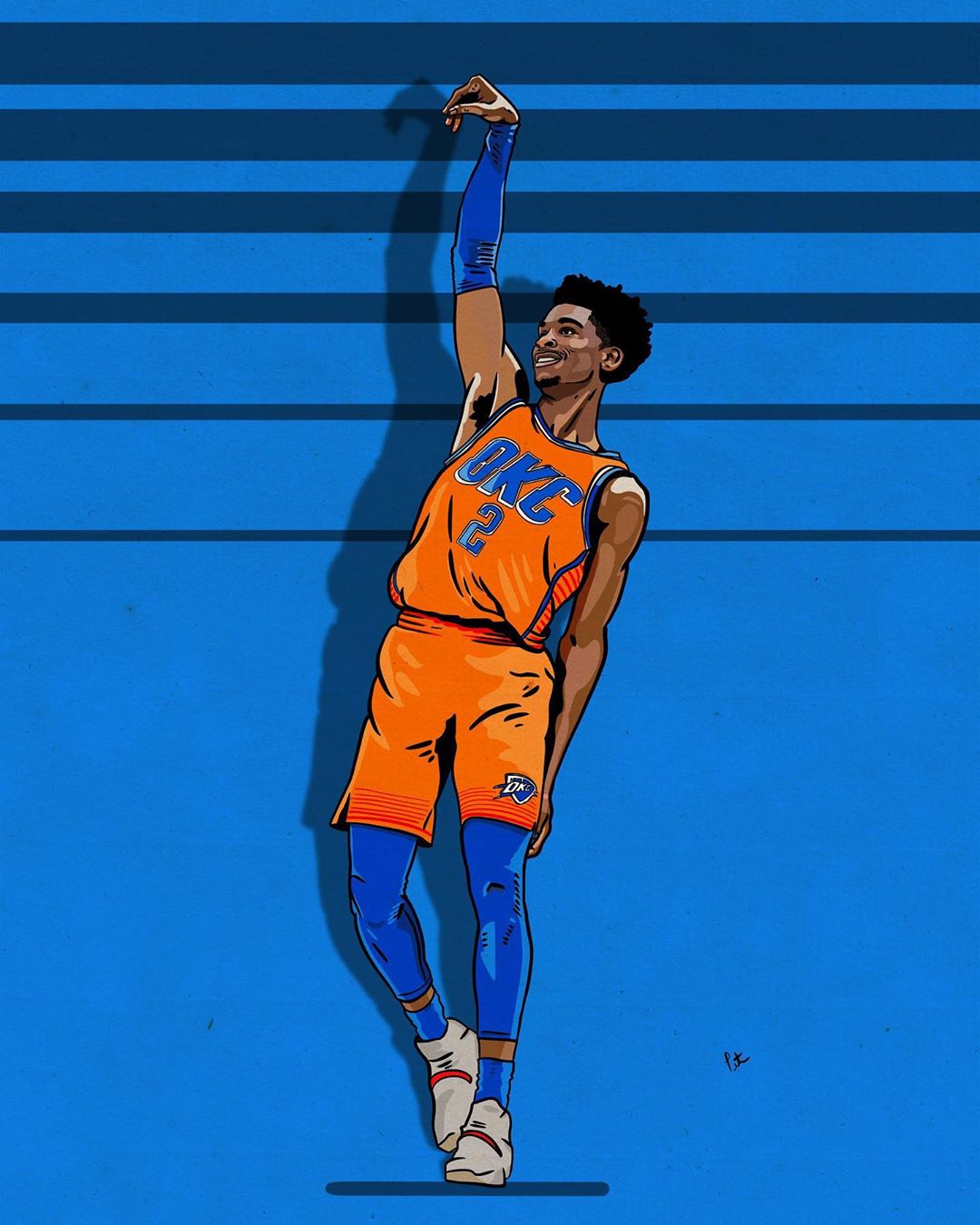 To state the obvious, he is positionless. And that is a nice change of pace from the previous decade of Thunder basketball when it comes to the guard position. His fluidity and ability to play any guard spot on the floor offered flexibility Thunder fans hadn’t seen in the Russell Westbrook era. Though Westbrook was a superb playmaker, his poor shooting made him difficult to play off-ball. His MVP season proved to be an anomaly to this rule because it was his first career season with near-average shooting splits: his 31 points per game came on 46 percent from the field and 34 percent from the three-point line. In the subsequent years, he proved that regardless of how relentless his attacks to the rim were, he couldn’t keep the defense honest in guarding his midrange jump shot and reckless pull-up threes.