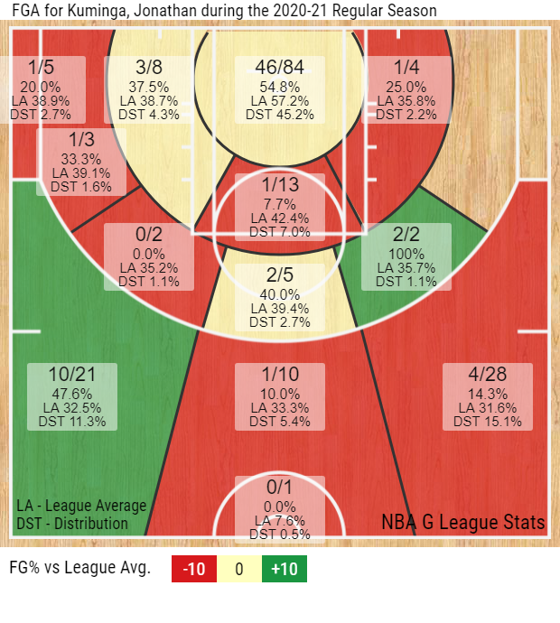 I’ve seen a lot of people comment on the small sample size for Kuminga, especially concerning his shooting and the low percentages that he put up. This take makes no sense to me and confirms that many people don’t factor in these facts when evaluating these players. Kuminga was never a shooter, he put up bad percentages all across the EYBL and has never shown a consistent outside jumper. As a result, when he was thrust into a high-usage creator role for Ignite, he struggled immensely. The frame is definitely intriguing and he’s a very athletic and strong player, but that didn’t translate to any success in the G-League. On the other hand, Kuminga’s teammate Jalen Green was awesome throughout the season. He showed real growth in his outside jumper and his self-creation translated seamlessly across the higher competition. Kuminga is a massive, massive project and needs to undergo major skill development to reach his potential.