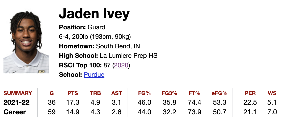 Before going in deeper, we must note that Ivey is the only sophomore in the consensus top four. However, he is rather young for a sophomore, with a draft age of 20.4. He will barely be older than Holmgren as a rookie, about nine months older than Paolo Banchero and a full year older than Jabari Smith, Jr.