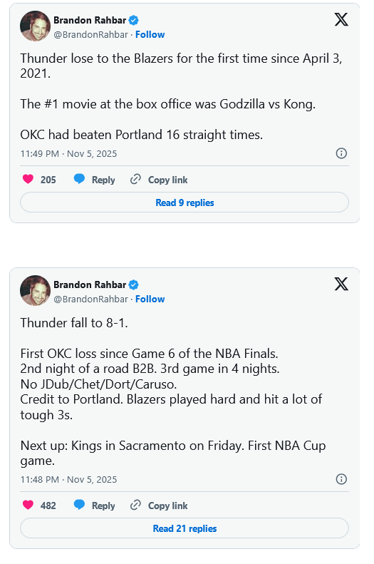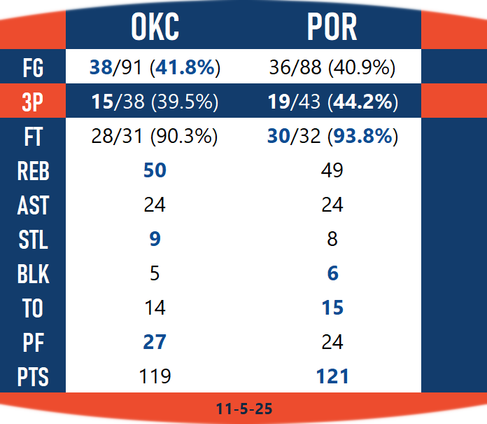 - But the Blazers played like the Thunder, right down to an eerily similar box score.