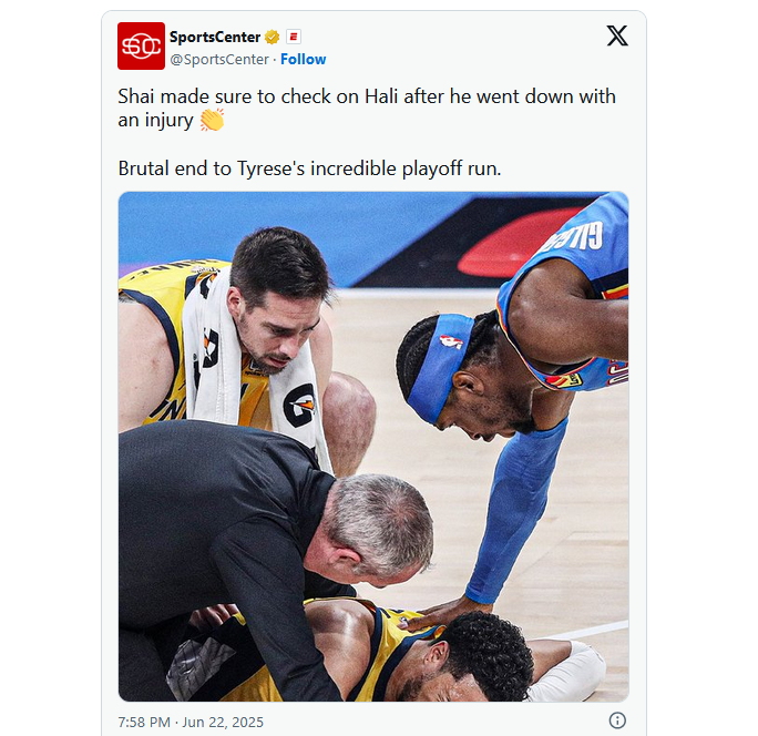The title is a party for Thunder fans who have rooted for the small market team who could since 2008, but the path to the Game 7 win was bittersweet. Late in the first quarter, Tyrese Haliburton appeared to snap his Achilles in a non-contact injury to the hurt calf he's nursed this series. Yet another devastating postseason injury to a star player in his prime, and a truly unfair end of the road for Indiana fans who had to watch their underdog's Goliath-slaying star lose the chance to finish a magical playoff run of upsets.