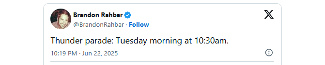 — Brandon Rahbar (@BrandonRahbar) June 23, 2025