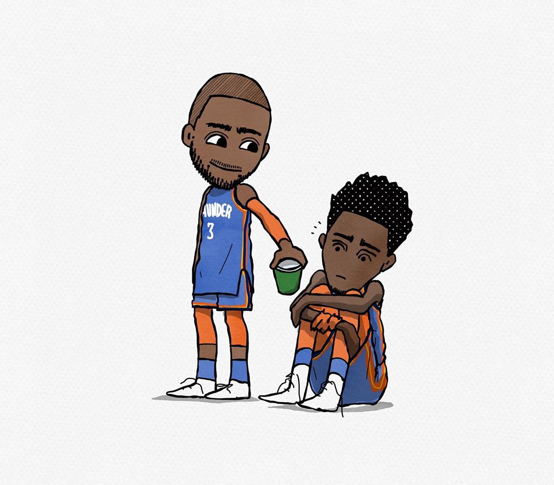 As reported elsewhere, Chris and Shai first met at Summer league. Right after the former was traded to the Thunder, and right before the latter was acquired by Oklahoma City. After they became teammates, they had workouts with noted trainer Olin Simplis. Since both became part of the Thunder, Chris and SGA seem inseparable; watching film together, practicing, competing in shooting drills, and spending free time together off the court. During games, CP3 has been a constant bug in Shai’s ear, giving him pointers about things he’s seeing in a particular game, prodding Shai to take over with scoring or assisting, and keeping him hungry yet humble. In post-game media sessions, Chris had given praise to Shai on things he’d done well or improved upon, while also pointing out things that need work.