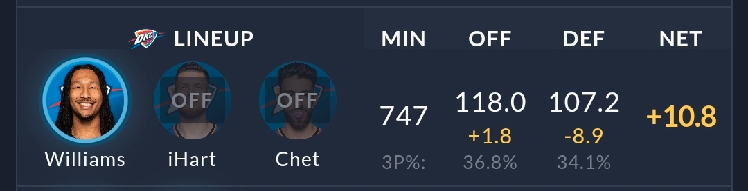 It ain't easy finding much needle movement in Wiggins' development, which makes sense for a 27-year-old who has already exceeded expectations. His skillset is not one of a lockdown defender, and his improvements won't leap off the stat sheet. It's tough pointing to a single defensive stat to make the case that he's measurably improved, but my eyes agree with the Thunder coaching staff's positive assessment. He's consistently in better position and making smarter choices on D, even if it's still an uphill battle for him against some of the league's tougher physical assignments.