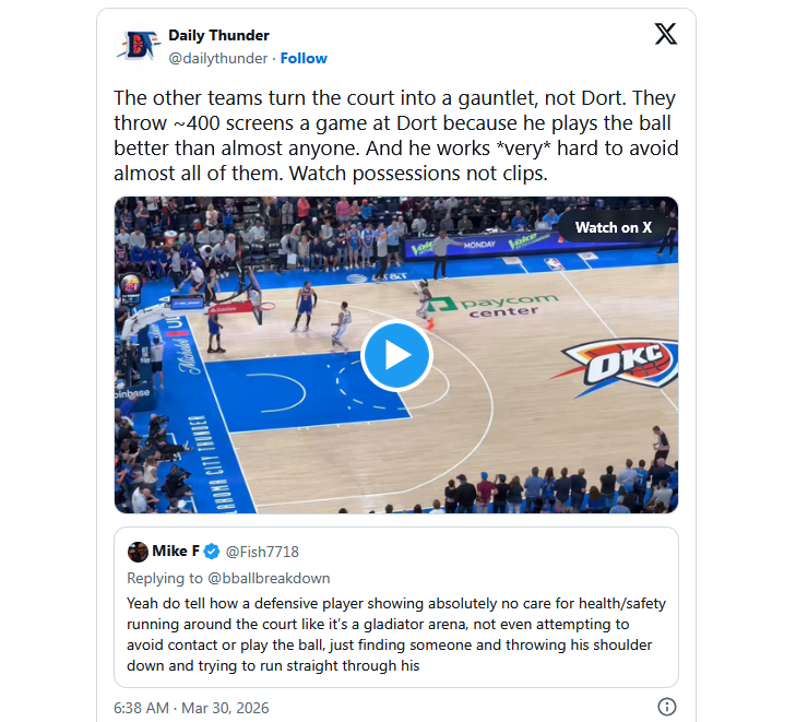 But I can't find compelling evidence that Dort has lost a step on defense or truly been more of a liability to the offense. Opposing offenses still devote waves of screens and actions to spring some of the league's premier scorers from the Dorture Chamber. And despite the masses devoting waves of accusations and outrage after some primetime flagrants, Dort has had his cleanest season as a defender with the refs.