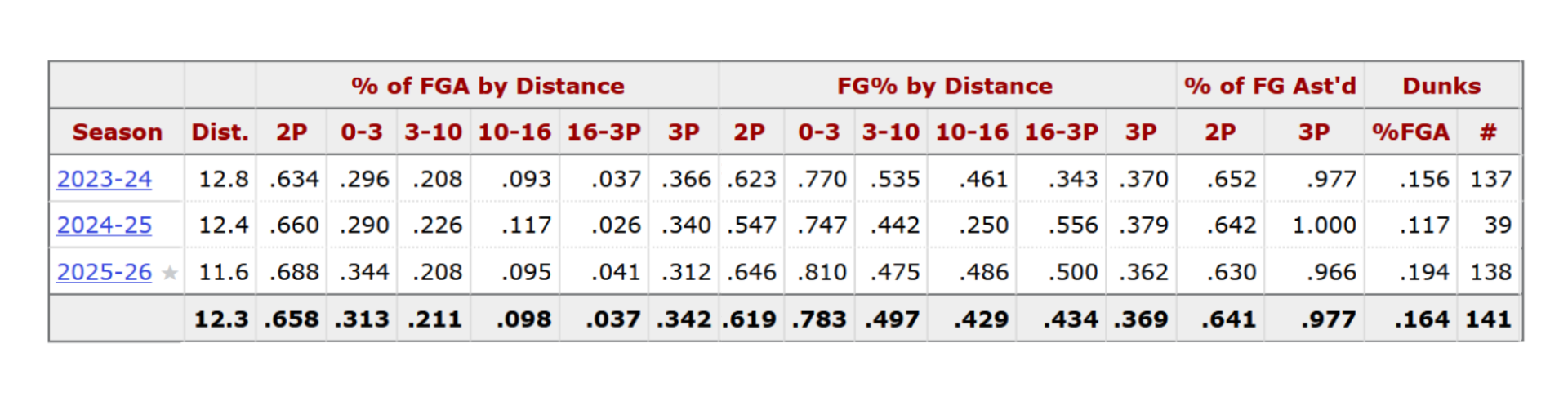 Lu Dort - '25-'26 3-point attempt rate: .708
