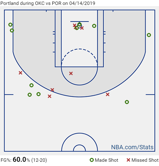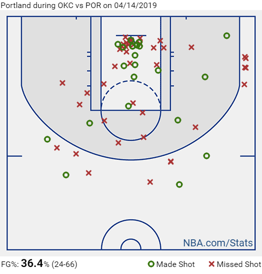 So, what happened? Well, a couple things — but it was mostly one thing happening over and over and over again. The Blazers shot 7-of-10 from three-point range in the first quarter, putting up 39 points and outscoring the Thunder by 14. It was a barrage that would make even the Warriors jealous.