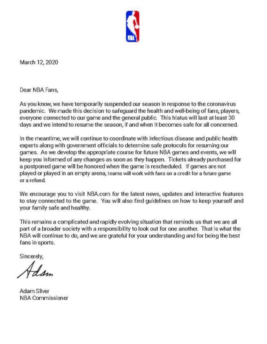 John Hollinger (The Athletic) on what to know about the NBA during its suspended season. “Adam Silver said on TNT’s Inside the NBA on Thursday that the league will be on hiatus for a minimum of 30 days, but even that seems soon. As one possible guidepost, the Chinese Basketball Association shut down its season on Feb. 1 and is attempting to resume play in early April. By all accounts, it feels like they’re rushing, and there are major logistical hurdles to get to start even by then.