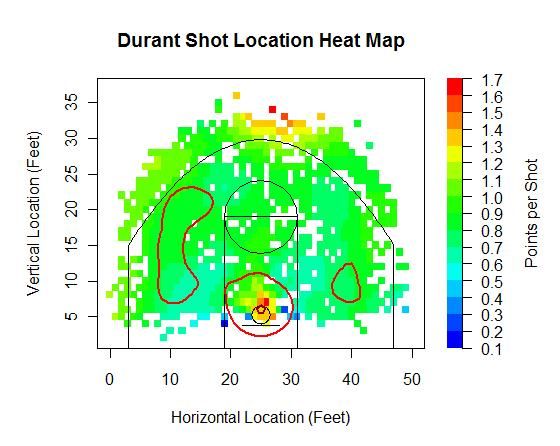 A nifty chart showing KD’s shot locations and the points per shot from each spot.