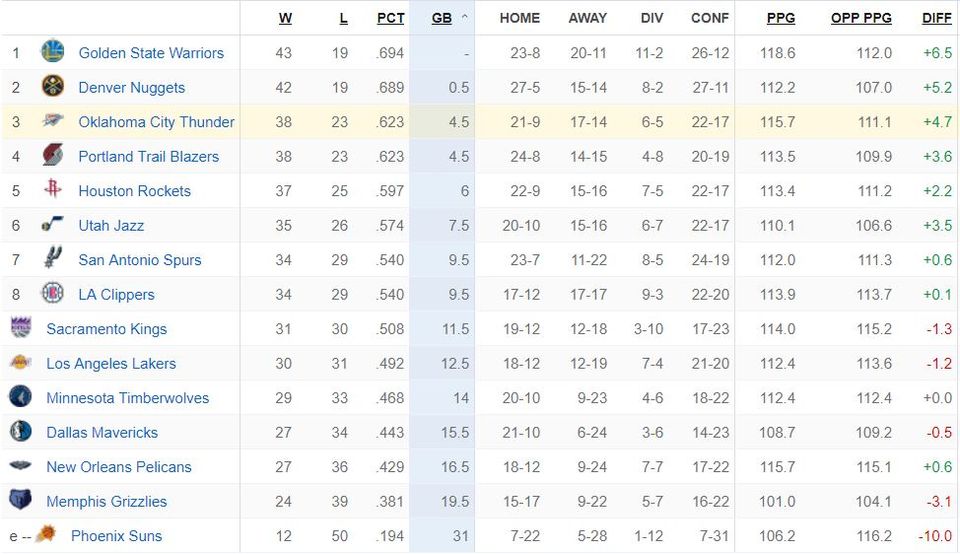 Updated Western Conference Standings: