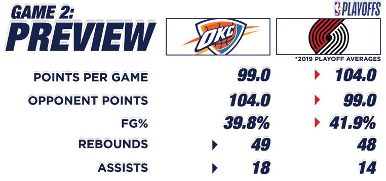 Game 2 Preview: Thunder (0-1) vs Blazers (1-0)