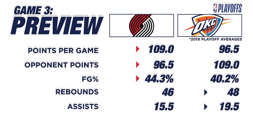 Game 3 Preview: Thunder (0-2) vs. Blazers (2-0)