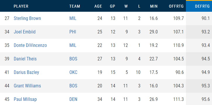 Although individual defensive rating is an imperfect stat, Bazley currently ranks fifth among NBA players who play 15 or more minutes a game and have appeared in 10 or more contests.