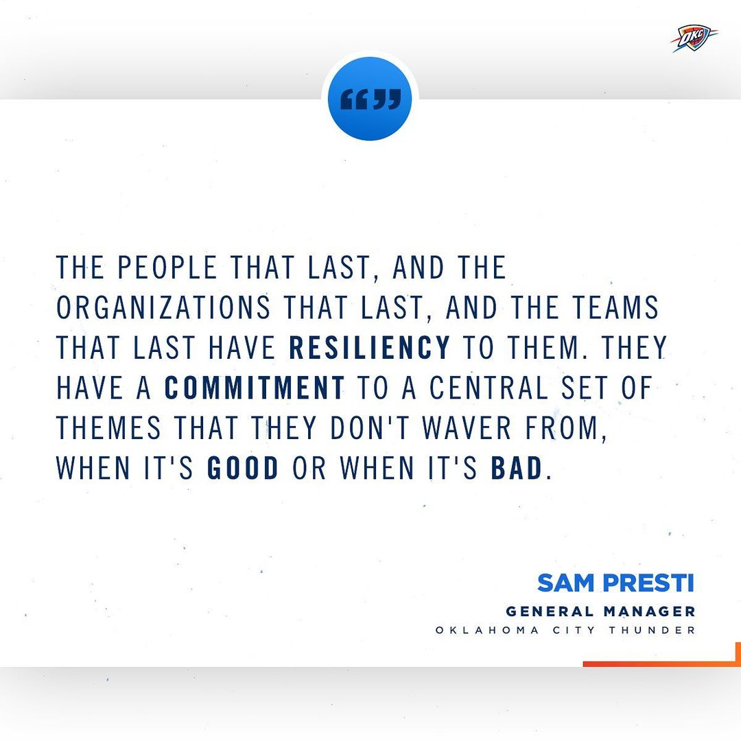 For everyone questioning the strength of the fanbase through a tank, I offer another question: What would stop the fan base from drifting into a state of apathy, the most dangerous state fans could be in for a sports organization, after yet another first round exit? Or after the team started regularly missing the playoffs with an aging group of veterans that was never replenished–to use another Presti phrase.