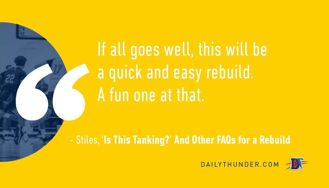 The Oklahoma City Thunder are embarking on a new but familiar journey. For the first time in Oklahoma City, the Thunder organization has updated its roster in such a way that has decreased its immediate ability to compete. Some call this “tanking”, some call it “rebuilding”; VP & GM Sam Presti has called it multiple names, but “shifting the odds” is one of his more descriptive phrases regarding this era of Thunder basketball.