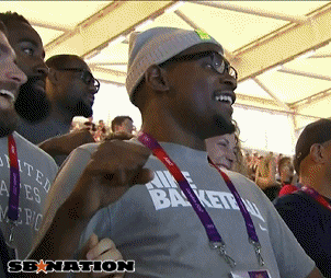 Watch KD and James Harden celebrate a Michael Phelps gold.