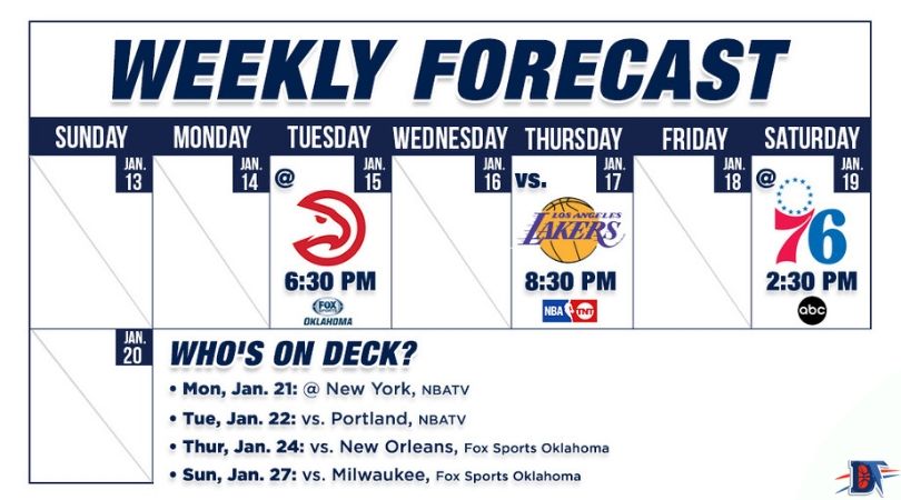 Thursday: vs. LA Lakers (8:30 PM CT)