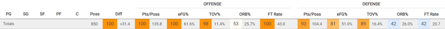 On-court efficiency (via PBPstats.com):