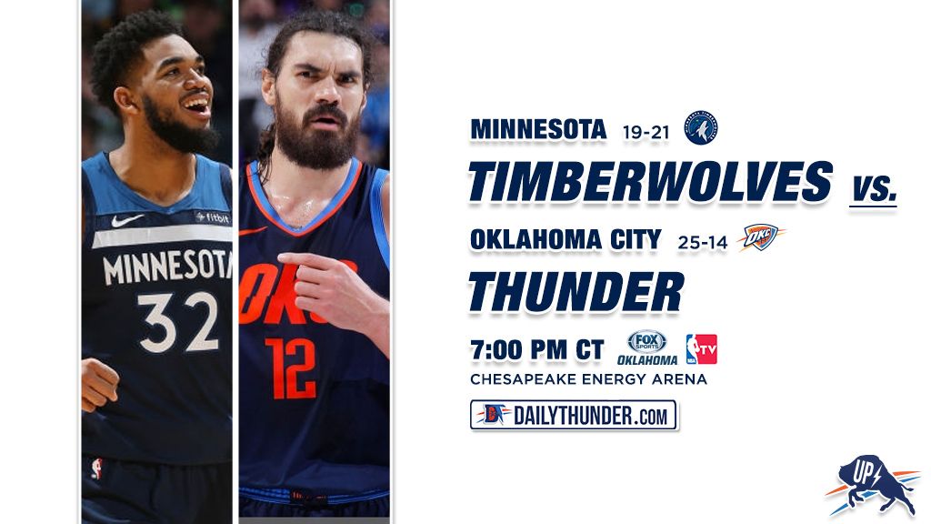 Coming off Sunday night’s brutal loss the the Wizards, the Thunder (25-14) are back in action tonight in Oklahoma City — taking on the Minnesota Timberwolves (19-21) at Chesapeake Energy Arena. The Northwest Division showdown features a Thunder team that is currently second in the division and third in the Western Conference overall. The Timberwolves, however, are last in the division, 11th in the West and recently fired coach Tom Thibodeau after the disappointing start to the 2018-19 campaign.
