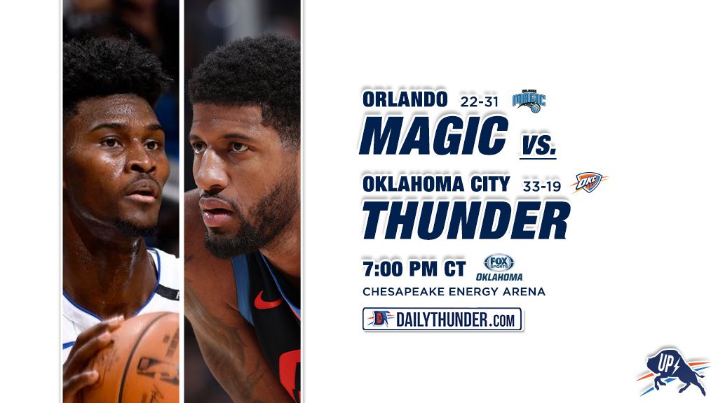The Thunder (33-19) are returning to action tonight in Oklahoma City, facing the Orlando Magic (22-31) at Chesapeake Energy Arena. OKC’s seven-game winning streak came to an end on Sunday afternoon in Boston, as they fell to the Celtics by a final score of 134-129. The Thunder will look to get back on track against a Magic team they beat a week ago today, but has won two straight (Pacers, Nets) since.