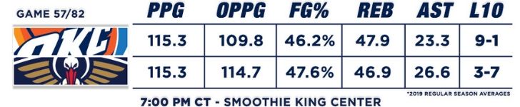 Streaking. With a win tonight, the Thunder will enter the All-Star break on a five-game winning streak — which would also be their 12th win in their last 13 outings. There’s arguably no hotter team in basketball at the moment, so while they might prefer to just continue playing instead of taking time off, OKC can hit the All-Star break on an absolute tear with another victory tonight in New Orleans.