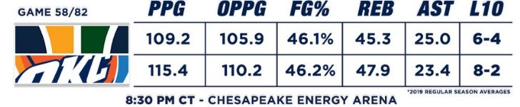 Tip-off is at 8:30 PM CST and will be televised on ESPN and Fox Sports Oklahoma. The Thunder are 3.5-point home favorites according to Odds Shark.