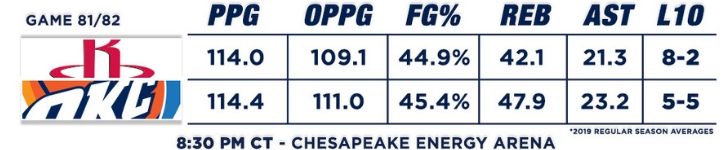 | OKC | 109.7 | 106.4 | 3.3 | 103.33 | 50.5 |
