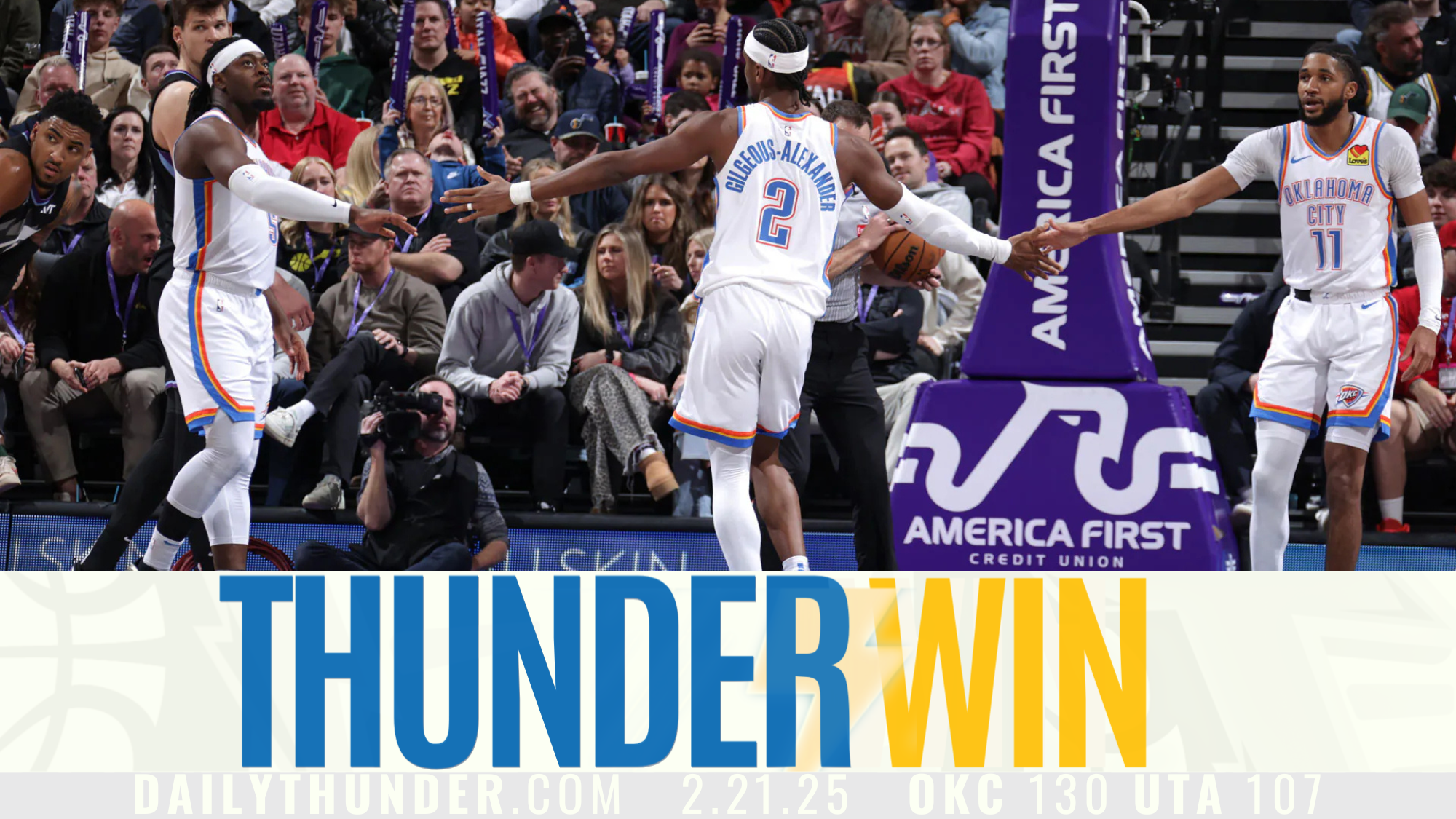 On a pedestrian night, the Thunder were 23 points better than the Jazz. Shai led all OKC scorers with 21 points in 32 minutes. No one else played more than 28 minutes in the sleepy blowout. The biggest takeaway: Chet looked great. Next up: