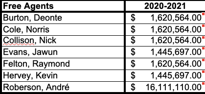 Some of these numbers (especially the salary cap for future years) are projected, but they will likely be fairly close.