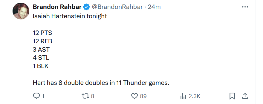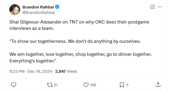The Thunder are playing well, but their warts are showing on offense. Even if travel and exhaustion are more to blame for OKC's offense sputtering again tonight, the consensus feels right: there are often too many connectors and not enough play-makers on the court. But Shai is on yet another level, elevating an offense that has been pedestrian without him. 35/6/4 with 6 stocks. Another level. And the Thunder defense rewarded him again tonight, clamping down the Magic for, save a few runs, the game's entirety. It ain't pretty, but this is how the Thunder win.