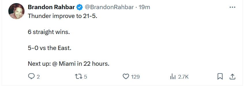 Next up: No rest for the weary. OKC heads to Miami to finish up this tight back-to-back.