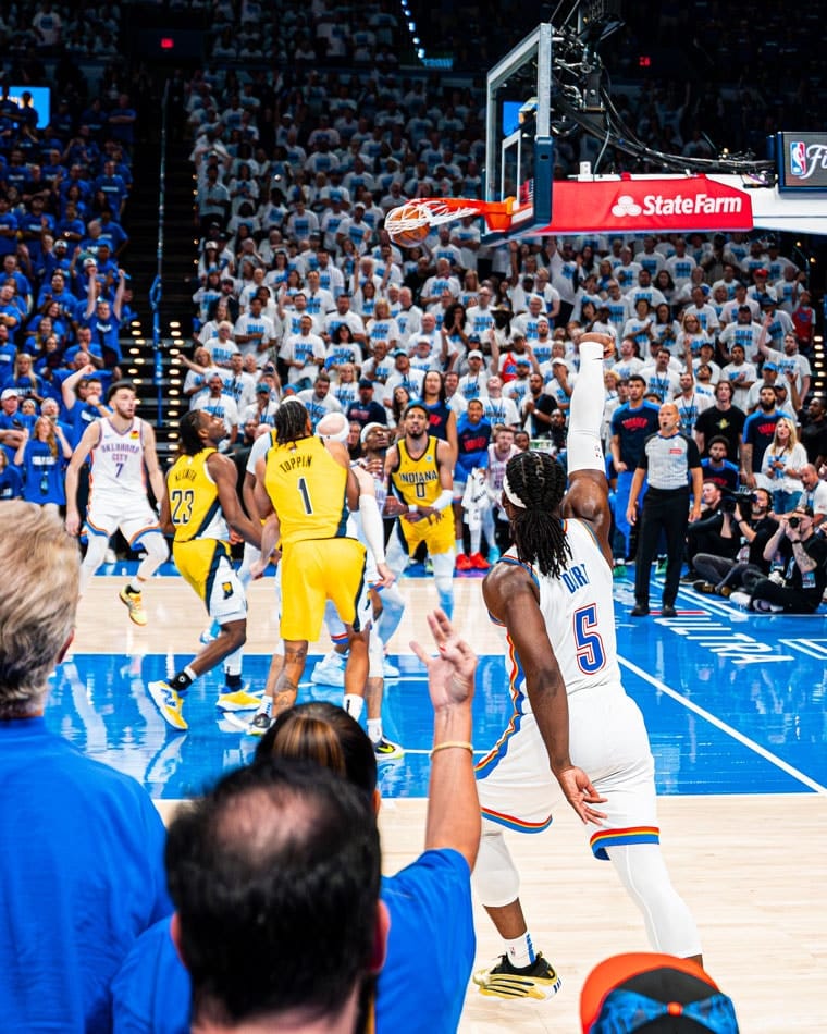 This isn’t just one moment. It’s pretty much every moment from Games 1, 2, 5 and 7. OKC’s atmosphere has always had the reputation of being one of the loudest and most passionate in the NBA. And while The Paycom Center has continued to carry the volume baton that had been passed previously from The Ford Center to The Chesapeake Energy Arena, the legend of Thunder fan noise in playoffs past seemed too big to ever topple. But I can say without a doubt that The Paycom got to those Russ/KD era passion peaks yet again. The NBA should crank out an extra 18,203 championship rings, because the Thunder don’t win a title without Loud City.