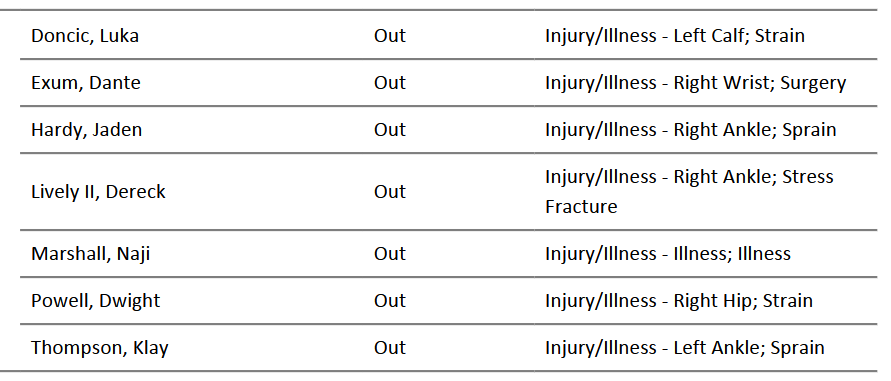 Luka's out, taking another Luka vs. Shai duel off the table. Chet Holmgren, Isaiah Hartenstein, and Derek Lively are all out, pausing the big/small frontcourt evolution for the rivalry. OKC is hurting (Isaiah Joe is out, sick) but Dallas has it worse. This just isn't the same as Thunder/Mavs has been lateley: