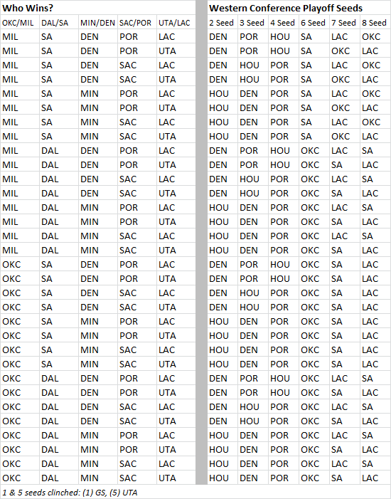 - The 1-seed (Golden State) and 5-seed (Utah) are already determined