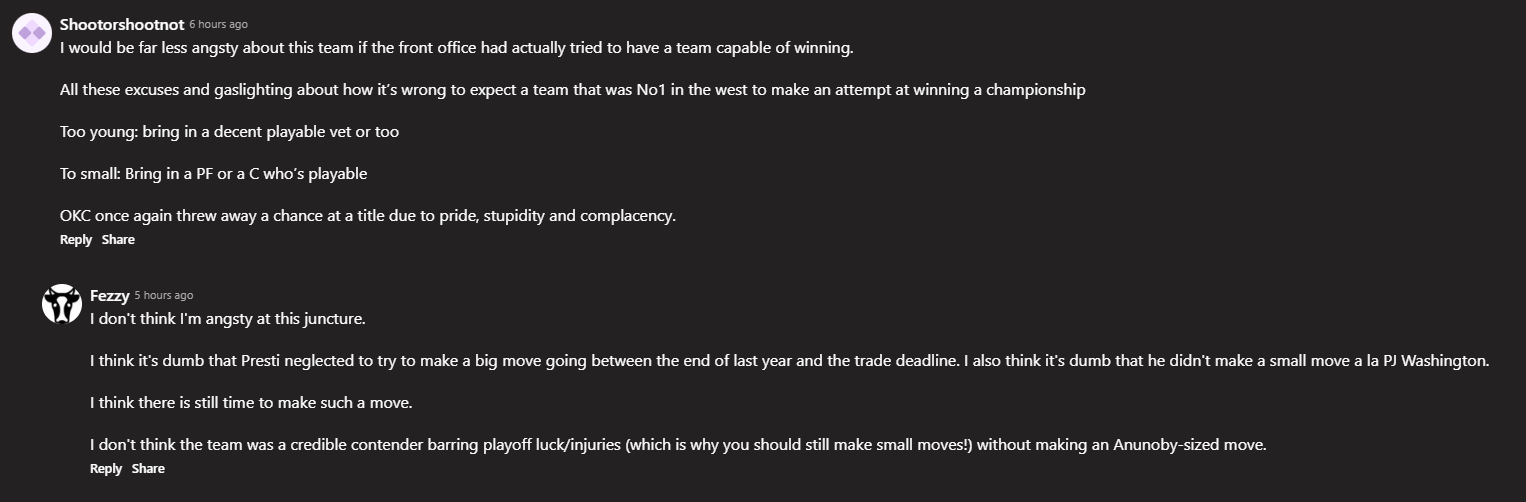 Ryan and Brandon let John Napier and Cray Allred crash the podcast to present some hot takes from the Daily Thunder comments section ahead of Game 6.