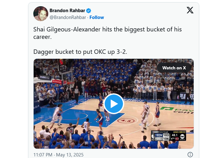 Next up: The Thunder get their first chance to close out the series on Thursday in Denver.