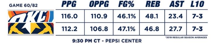 Preview 60 of 82: Thunder @ Nuggets